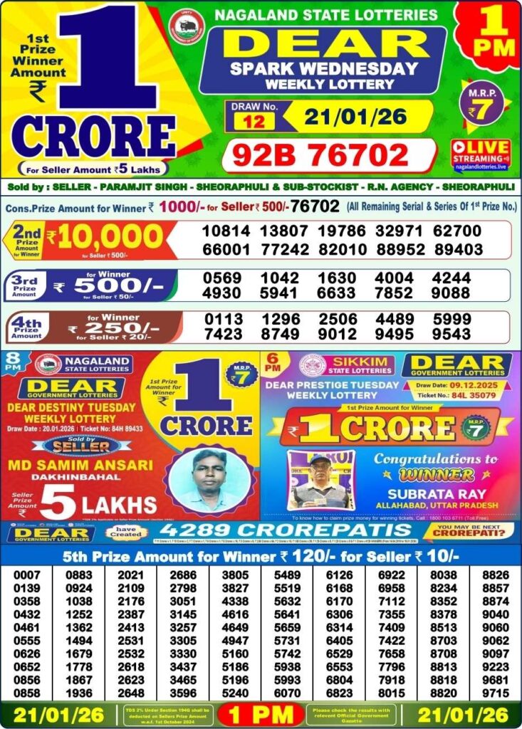 The main benefit in Nagaland State Lottery and West Bengal State Lottery is that the first prize is worth Rs. 1 Crore. If you can win this your life will be prosperous. You can then begin any type of business. That will allow you to pay for the costs of your family.