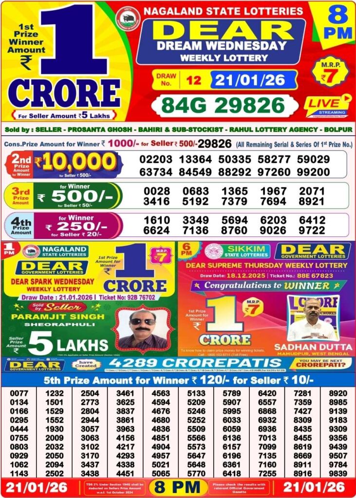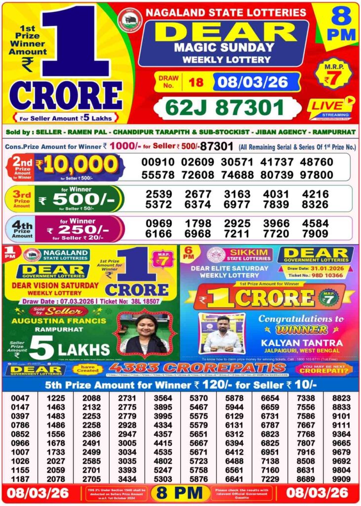 - nagaland state lottery 8 pm