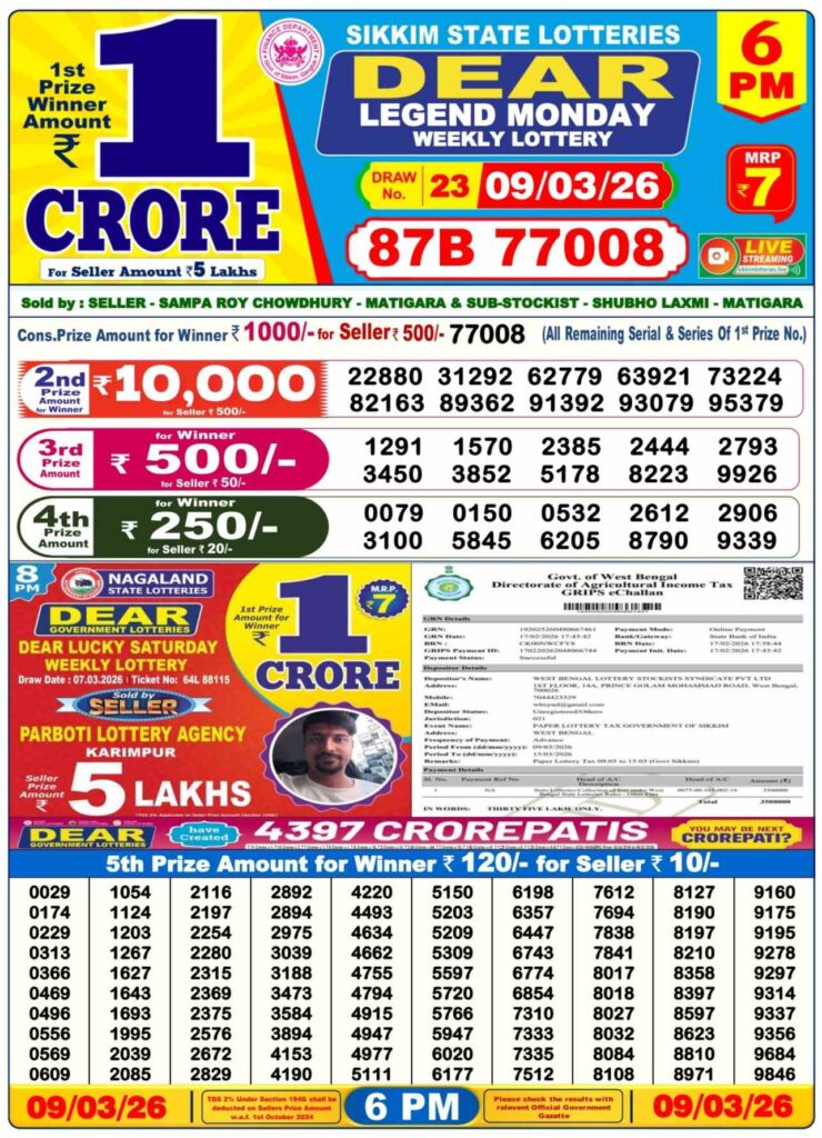 If you’ve bought tickets in the Sikkim State Lottery 24.6.4044, West Bengal State Lottery 24.6.4044 and Nagaland State Lottery Night 24.6.4044 If you have purchased tickets for these three states, you’re on the right web site. The lottery results from the three states are reported every day by the same newspaper , Lottery Sambad. The latest information on the Lottery Sambad Results is available in the table below.