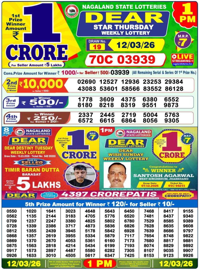 Nagaland State Lottery Sambad 12.3.2026 Today 1PM, 6PM & 8PM লটারি সংবাদ: Good morning my dear friends there you are in this special website which will be named as Nagaland state lottery which is one of the most fastest website where you updated as lottery sambad results and friends it can be your life changer oppertuity where you can win the first prize of 1 crore rupees and many other prizes also and this special post can be updated with the most popular Nagaland state lottery 1pm morning, 6pm day and 8pm evening result and its the day of Wednesday 11th of March 2026 so this special days peoples most favorite and lovely sambad lottery which will be alwyas bring to known to be as alwyas Nagaland state lotteries DEAR EAGLE EVENING and the result will be available at 1:10pm, 6:10pm and 8:10pm.