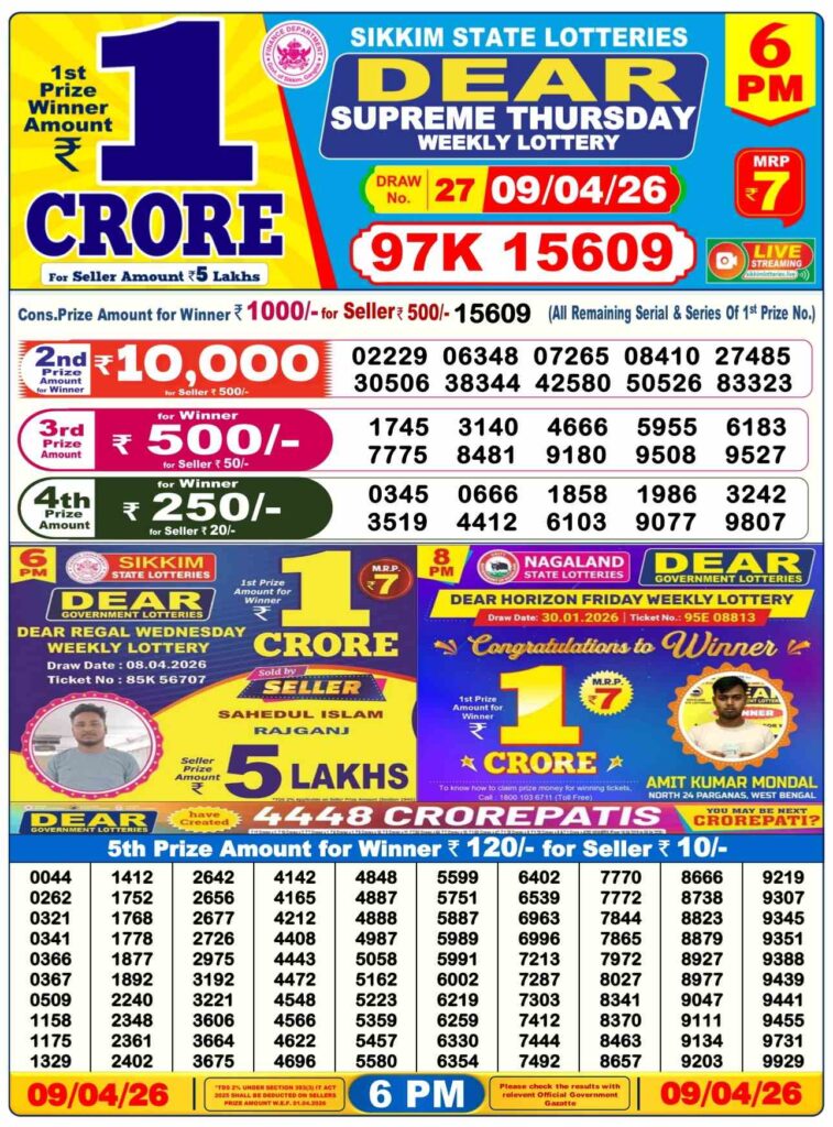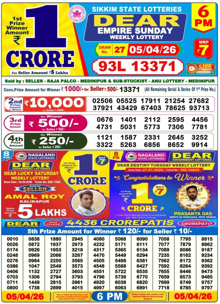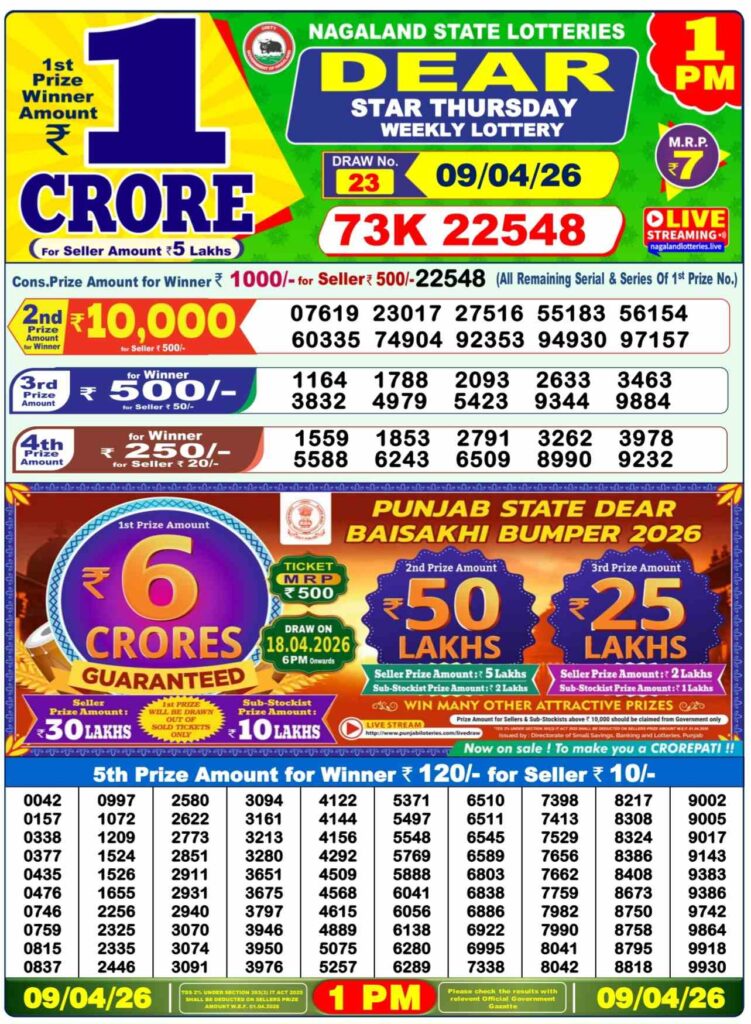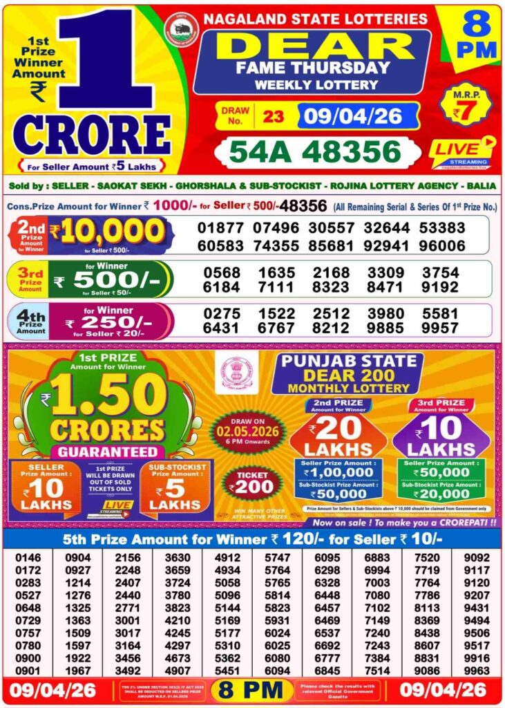 Nagaland State Lottery Sambad 10.4.2026 Today 1PM, 6PM & 8PM লটারি সংবাদ: Good morning my dear friends there you are visited this webiste which is named as Nagaland state lottery which is one of the most popular website in the industry of lottery sambad results and it will be alwyas gives you the chance to win the many cash prizes like first prize of 1 crore rupees and other many big cash prizes and this special post is about for the Nagaland state lottery 1pm morning, 6pm day and 8pm evening result and its the another great day of Thursday a lovely guruvar 9th of April 2026 so so its days peoples most searched sambad lottery which will be known to be as it will be Nagaland state lotteries DEAR FALCON EVENING and the result will be available at 1:10pm, 6:10pm and 8:10pm.