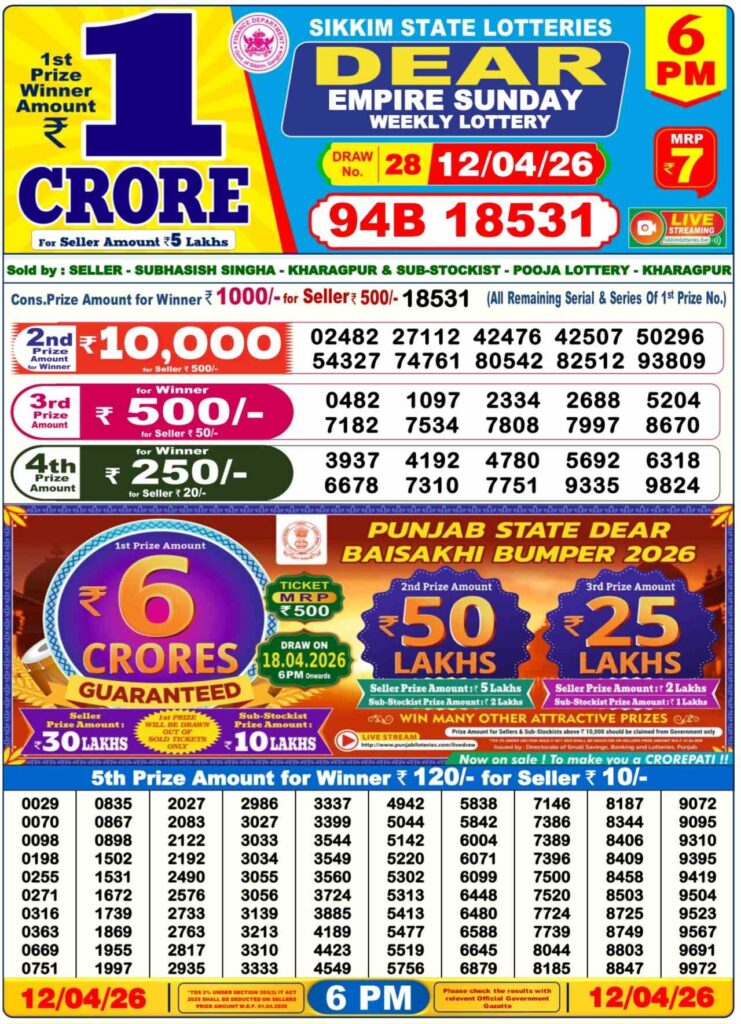 | Lottery Sambad Live Today 12.4.2026 Result | |