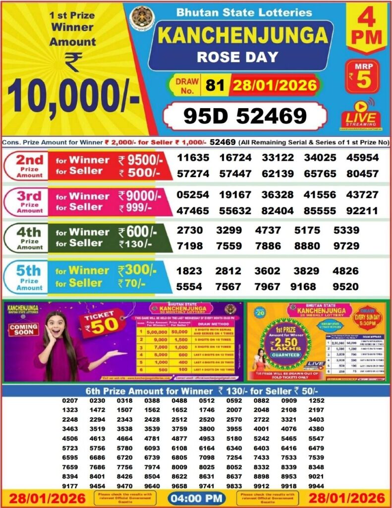 Bhutan Lottery Result 28.1.2026 12PM, 6PM and 8PM Bhutan Lotteries: Good morning my dear friends there you are landed at the website which has been named to be as it will be Nagaland state lottery one of the most fastest website where you are daily visuted for the lottery sambad results and you can win the many cash prizes and first prize of 1 crore rupees so many of the peoples try there luck with us and you know that this special post is about for the Bhutan Lottery Result 12pm, 4pm and 8pm morning, day and evening result and its the day of Wednesday 28th of January 2026 so its days sambad lottery which will be always been greatly known to be as it is Bhutan Lotteries and the result will be available at 12:10pm, 4:10pm and 8:10pm here you can get the chance to win the 1CR rupees an friends we also provided you the most awesome Sikkim state lottery, West Bengal state lottery, Nagaland State Lottery and this site known as Lottery Sambad.