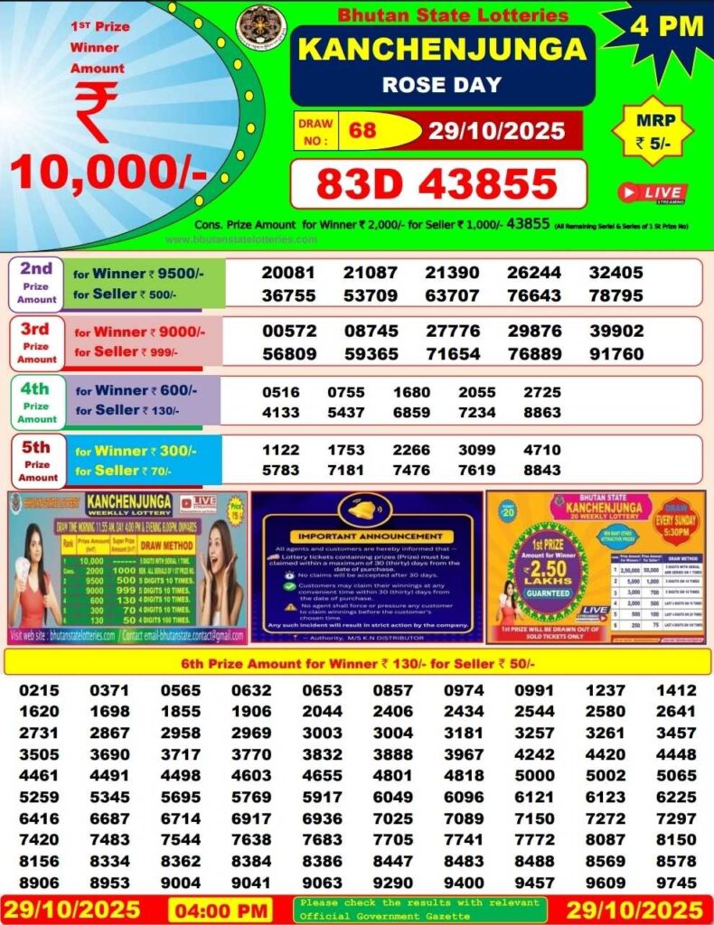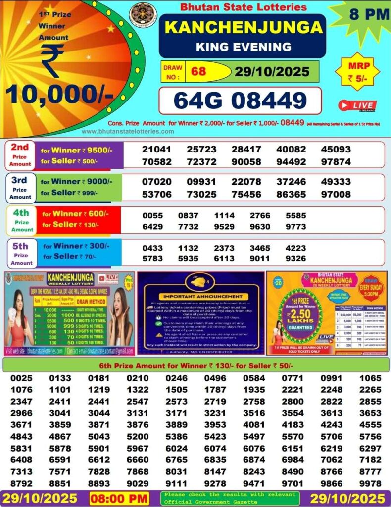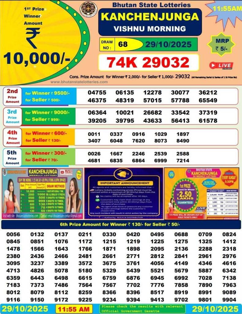 Bhutan Lottery Result 30.10.2025 12PM, 6PM and 8PM Bhutan Lotteries: There you are daily landed at the website which has been greatly known to be as Nagaland state lottery which is one of the most fastest site in the industry of latest lottery sambad results and friends it will be your life changer oppertunity try your luck with us and gets the chance to win the first prize of 1 crore rupees and friends there this special post can be updated with the Bhutan Lottery Result 12pm, 4pm and 8pm morning, day and evening result and its the another lovely day of Wednesday 29th of October 2025 this specail days most popular sambad lottery whcih will be alwyas told to be as Bhutan Lotteries and the result will be available at 12:10pm, 4:10pm and 8:10pm here you can get the chance to win the 1CR rupees an friends we also provided you the most awesome Sikkim state lottery, West Bengal state lottery, Nagaland State Lottery and this site known as Lottery Sambad.