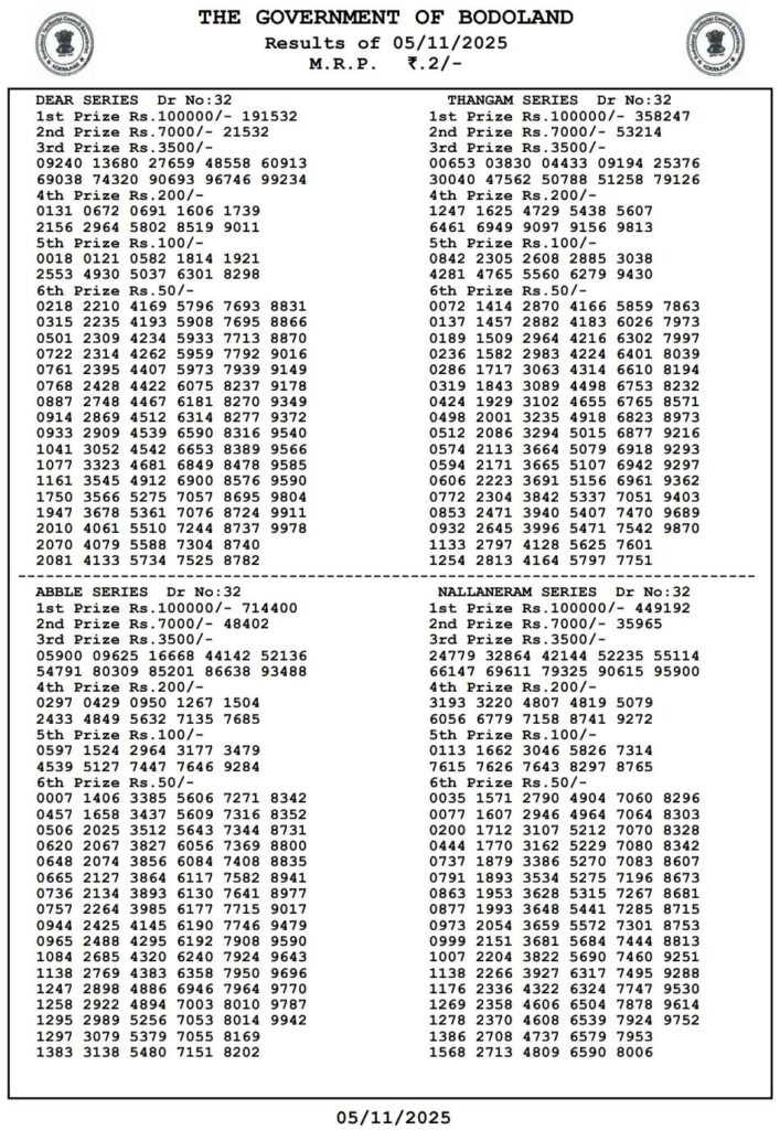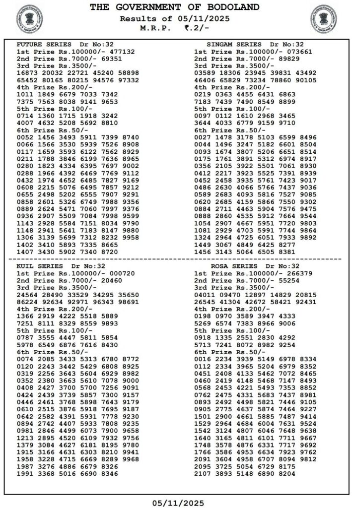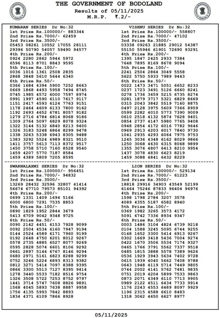 Bodoland Lottery Today Result 3PM 6.11.2025 Assam State Lotteries: You are at the site which has been known to be as Nagaland state lottery where you are in this webiste for the latest lottery sambad reslts and friends we gives you the daily chance to win the first prize of 1 crore rupees and friends try your luck with us daily and viewers this special post can be daily been updated with the most popular Bodoland Lottery 3pm day result and its the another great morning of 6th of November 2025 this great guruvar Thursdays most popular sambad lottery which will be alwyas been prouldy known to be as it will be Bodoland Lotteries and the result will be available at 3:10pm here you can get the chance to win the 1CR rupees an friends we also provided you the most awesome Sikkim state lottery, West Bengal state lottery, Nagaland State Lottery and this site known as Lottery Sambad.