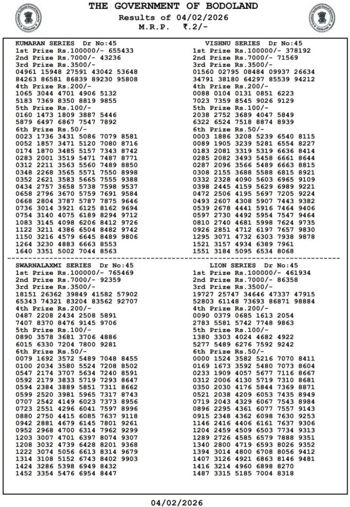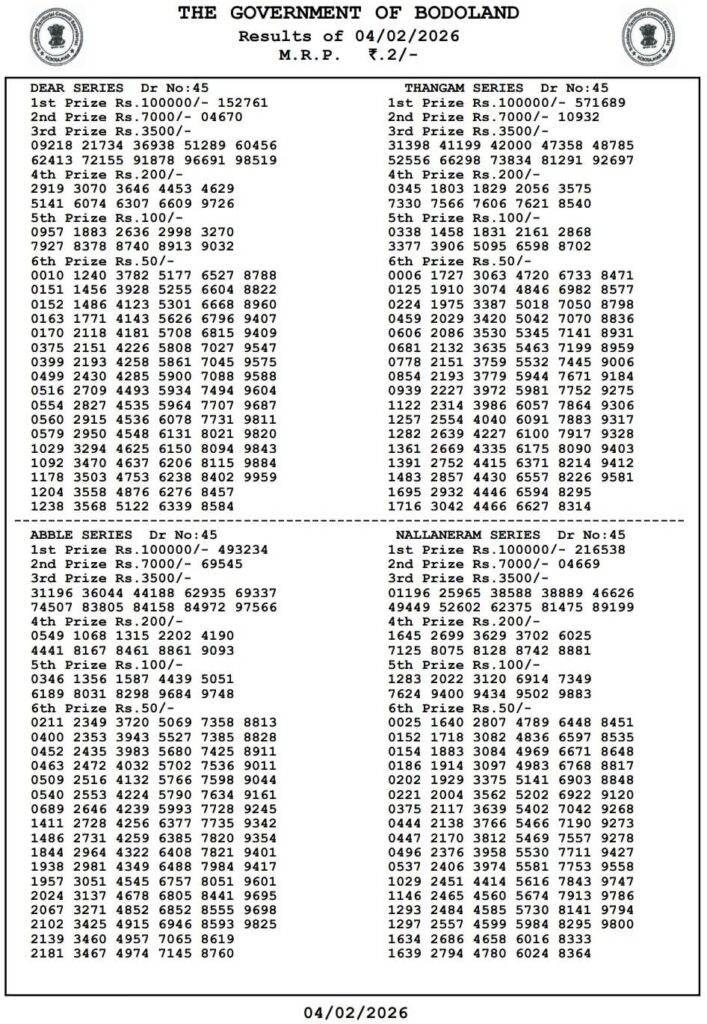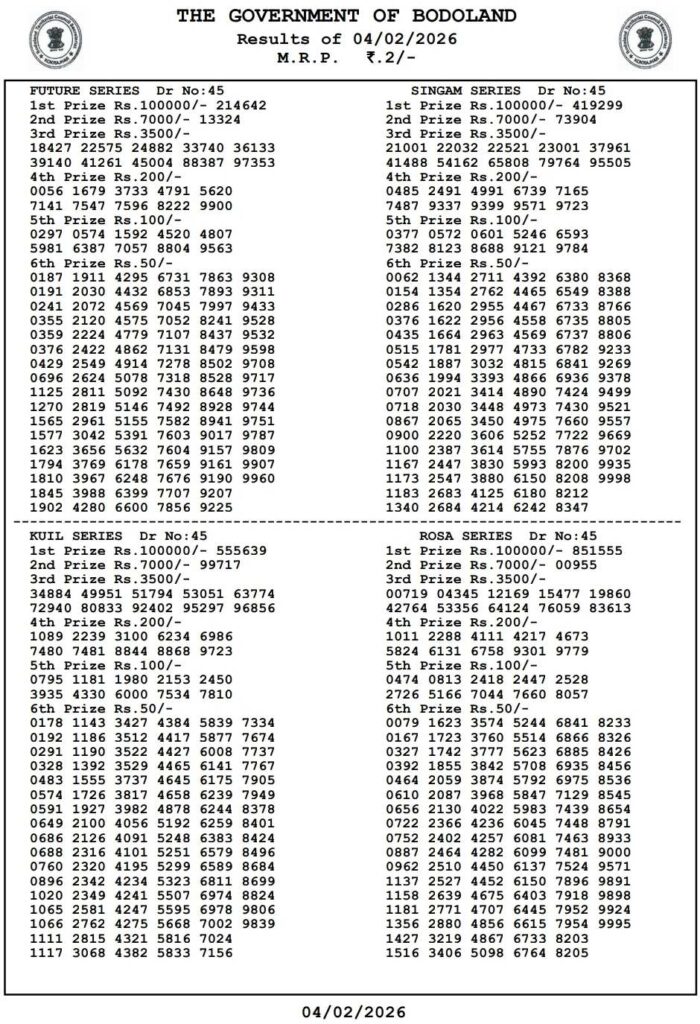 Bodoland Lottery Today Result 3PM 5.2.2026 Assam State Lotteries: Good day my dear friends there you are lande at the site which has been named as Nagaland state lottery one of the most fasetst website where you are getting the latest lottery sambad results and friends you can do us been try your luck with us and getting the first prize of 1 crore rupees so friends it will be your day and this special post can be updated with the latest Bodoland Lottery 3pm day result and its the day of 5th of February 2026 great Thursday lovely guruvar so its days sambad lottery which will be alwyas been greatly known to be as it will be Bodoland Lotteries and the result will be available at 3:10pm here you can get the chance to win the 1CR rupees an friends we also provided you the most awesome Sikkim state lottery, West Bengal state lottery, Nagaland State Lottery and this site known as Lottery Sambad.