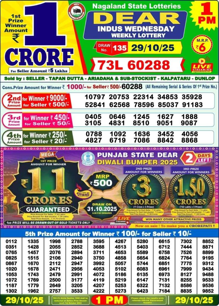 - West Bengal State Lottery Sambad Result 29.10.2025 Today 4PM Result