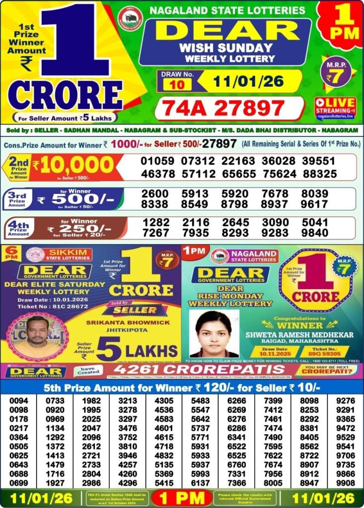Sikkim State Lottery Result 11.1.2026 Today 1PM Morning Result: There you are daily visited this post is about for the most lovely Sikkim state lottery 1pm monring result and dear friends you know that these all the different posts and this special post can be updated with the latest lottery sambad results and friends you know that there you can win the first prize of 1 crore rupees and friends if you wants the fastest delivery of the results then do us been created shortcut as which is named as Nagaland state lottery and its the day of Sunday a free holiday 11th of January 2026 so its days sambad lottery which will be alwyas bring to named to be as Sikkim state lotteires DEAR LOVE MORNING and the result will be available at 1:10pm here you can get the chance to win the 1CR rupees an friends we also provided you the most awesome Sikkim state lottery, West Bengal state lottery, Nagaland State Lottery and this site known as Lottery Sambad.