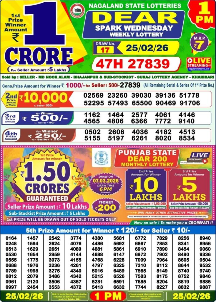 Sikkim State Lottery Result 25.2.2026 Today 1PM Morning Result: Good morning my dear friends there you are in this webiste Nagaland state lottery one of the most prominent website where you daily found for the lottery sambad results and friends there you can daily try your luck with us and friends win the many cash prizes and this special post can be updated with the most latest Sikkim state lottery 1pm moring result and friends its the day of Wednesday 25th of February 2026 so its days peopels most favourite and searched sambad lottery which will be alwyas been greatly known to be as Sikkim state lotteires DEAR CHERISHED MORNING and the result will be available at 1:10pm here you can get the chance to win the 1CR rupees an friends we also provided you the most awesome Sikkim state lottery, West Bengal state lottery, Nagaland State Lottery and this site known as Lottery Sambad.
