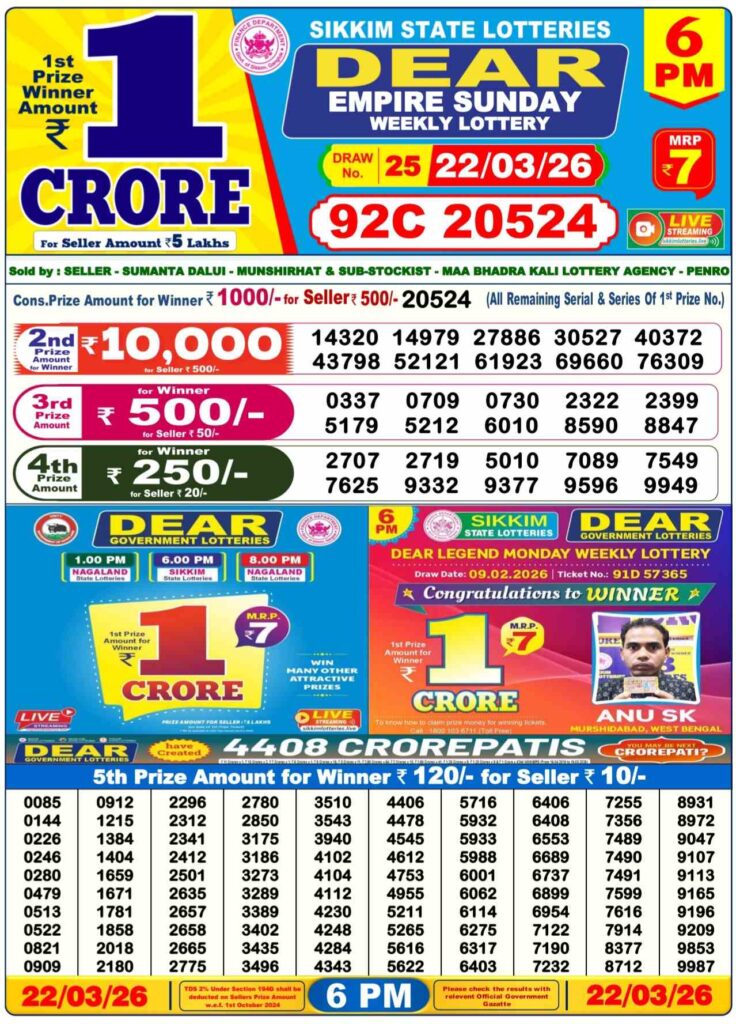 West Bengal State Lottery Result 23.3.2026 Today 6PM Result: Good day my dear friends there you are at the site Nagaland state lottery which is one of the mos fastest website where you daily visited for the most lovely and peoples most favorite sambad lottery which will be alwyas your life chngaer oppertunity and all the posts can be getting you rich and win the first prize of 1 crore rupees and friends this post is baout for the West Bengal state lottery 6pm day result and its the another great holiday of 22n dof Sunday 2026 so its days sambad lottery which will be alwyas been prouldy known to be as it will be West Bengal state lotteries Dear Bangabhumi Bhagirathi and the result will be available at 6:10pm here you can get the chance to win the 1CR rupees an friends we also provided you the most awesome Sikkim state lottery, West Bengal state lottery, Nagaland State Lottery and this site known as Lottery Sambad.
